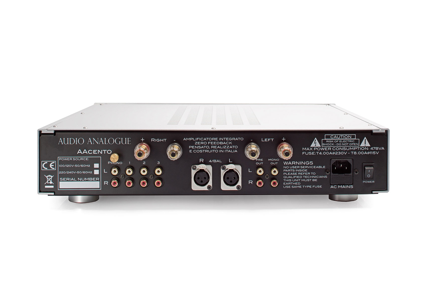 • Entradas: 3x RCA; 1x XLR; 1x Phono (MM/MC)